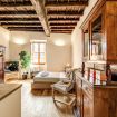 Live halfway between ancient and modern in this fanciful apartment where the magnificent coffered ceiling and period furniture take on new life in an environment with a modern cut and comfort and where the light creates a warm and welcoming atmosphere.